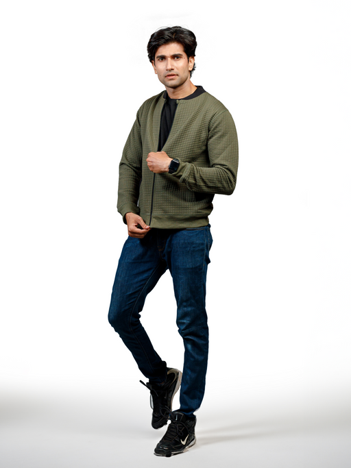 View full detailsJacquard Waffle Plaid Jacket - Olive - JKJ0123
